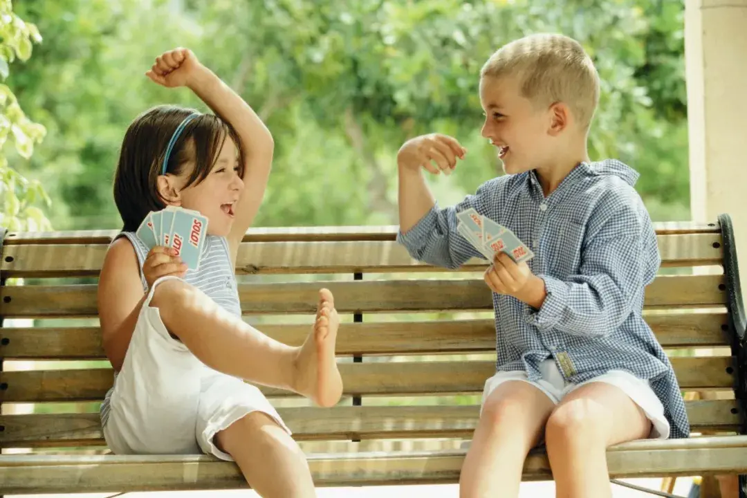方式:准备一副扑克牌,将它分成两份,翻到同一色系的,请孩子拍手,不同色系的则不用拍手,之后家长可以加快翻牌的速度,锻炼孩子的反应能力,延长孩子的集中注意力的时间。