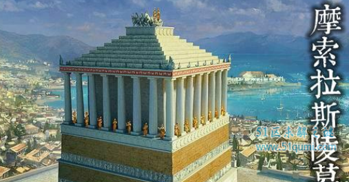 哈利卡纳苏斯的毛索洛斯墓庙约45米高,底座上部呈门路形的金字塔状,卡里亚王国摩索拉斯国王的塑像大概耸立在尖端。陵墓毁于公元3世纪的一次地动中。