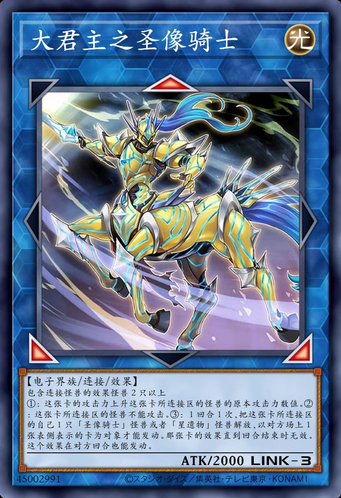 除了割草甘多拉外,还有守护龙甘多拉的构筑,同样也是FTK。核心思路是网络小龙一卡生万物的经典背书。不过终端变成了「大君主之圣像骑士」和「破灭龙 甘多拉X」。「锁龙蛇」+任意1张攻击力大于2600的怪兽,链接到大君主之后,就可以让其攻击力达到8000+,然后用锁龙蛇的效果特招「破灭龙 甘多拉X」,破坏大君主就可以直接给予对方8000+HP伤害。