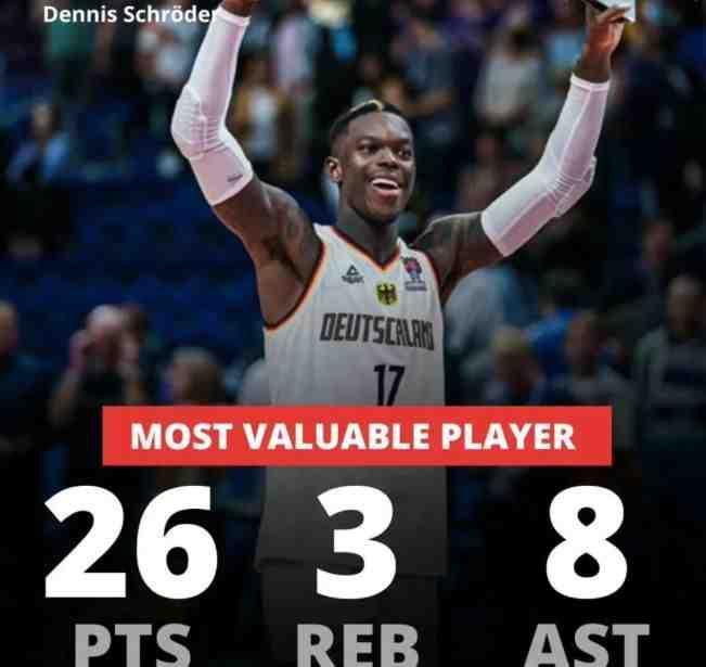 作为德国男篮的核心球员,施罗德和小瓦格纳纷纷在外线开火,全队首节就投进了8个三分球,以31比27领先希腊。在第三节比赛,德国一度打出了20比1的攻击波,直接打崩了希腊的信心。