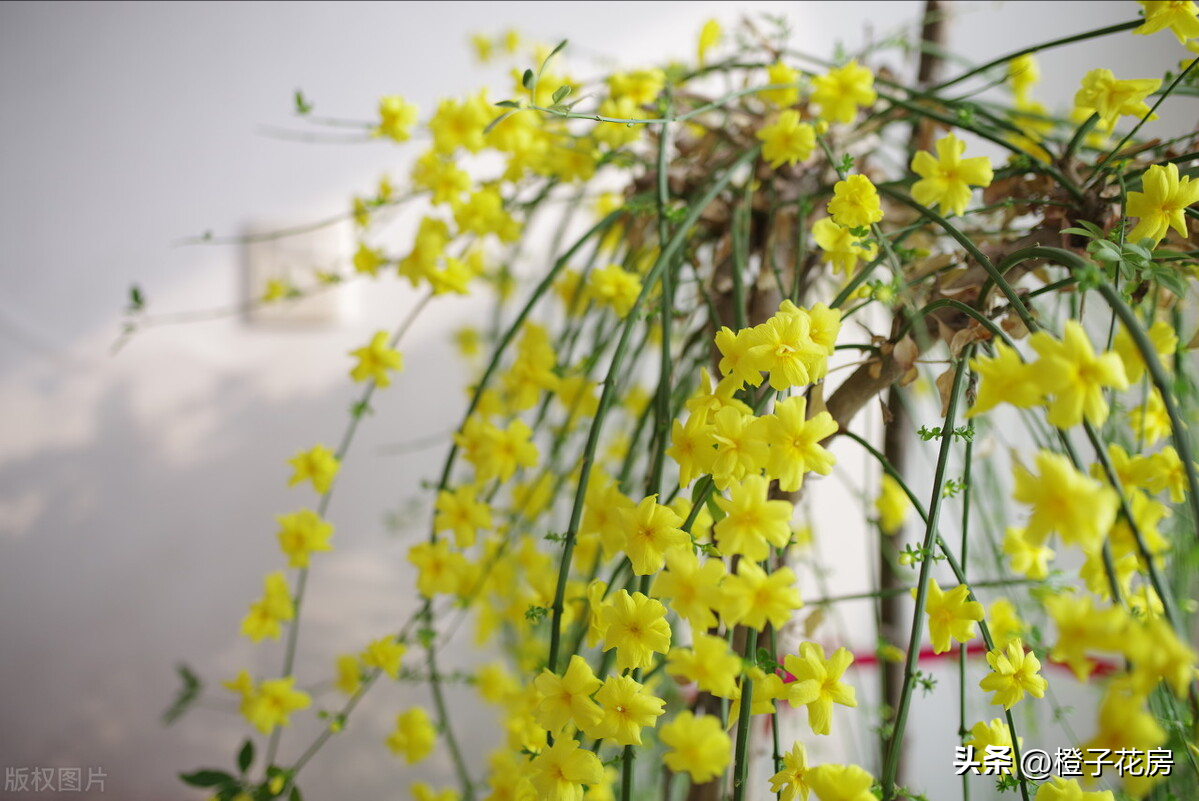 迎春花,因其在百花之中开花最早,花后即迎来百花齐放的春天而得名。花期2-4月,先花后叶开放。