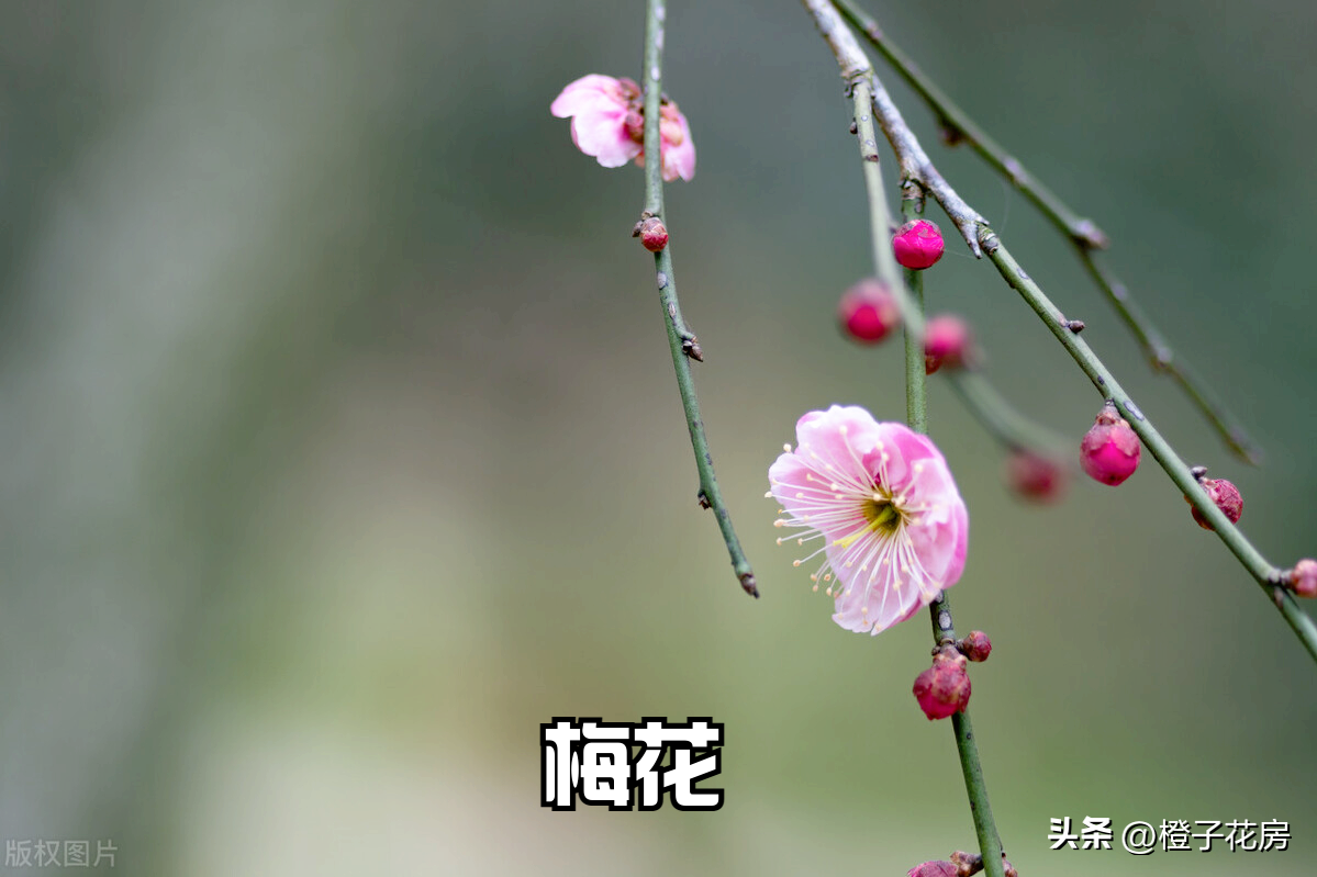 识别要点:梅花是单朵开放,花梗短,花瓣数5枚,花萼5,花白色或粉红色,花朵开放后像宝莲灯一样,花香清雅,有梅子的味道。