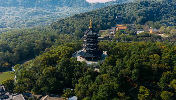 雷峰塔又名黄妃塔、西关砖塔,位于浙江省杭州市西湖区,地处西湖风景区南岸夕照山之上,是吴越国王钱俶为供奉佛螺髻发舍利、祈求国泰民安而建,始建于北宋太平兴国二年,历代屡加重修,现存建筑以原雷峰塔为原型设计,重建于2002年,是西湖十景之一,中国九大名塔之一,中国首座彩色铜雕宝塔。