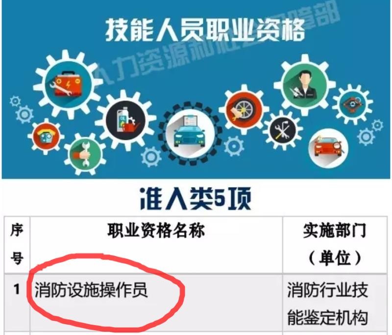 消防设施操作员是技能人员职业资格准入类证书。