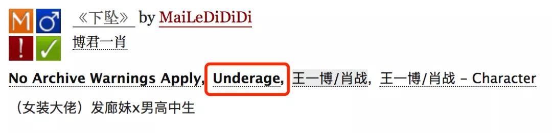 最近,围绕着饭圈,又出现了一波大事儿,在网上大家称之为“肖战227”事件。 在上周,一篇名为《下坠》的同人文发在了AO3和另一个平台LOFTER上,这部作品描述的是两位男主角——有性别认知障碍的“肖战”和一位高中生“王一博”之间相爱的故事。因为一些情节描写的关系,作者把它标注为“未成年”。