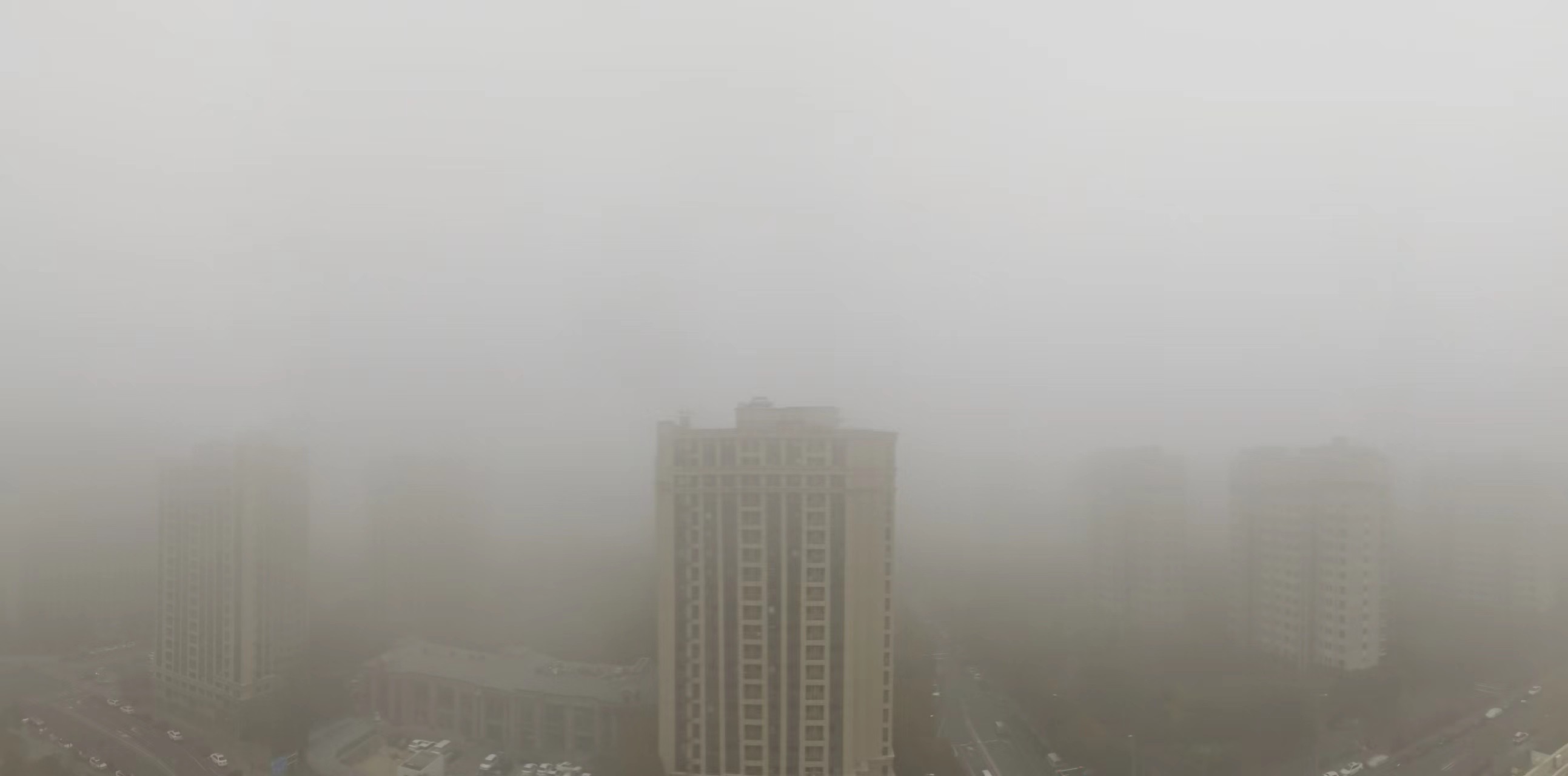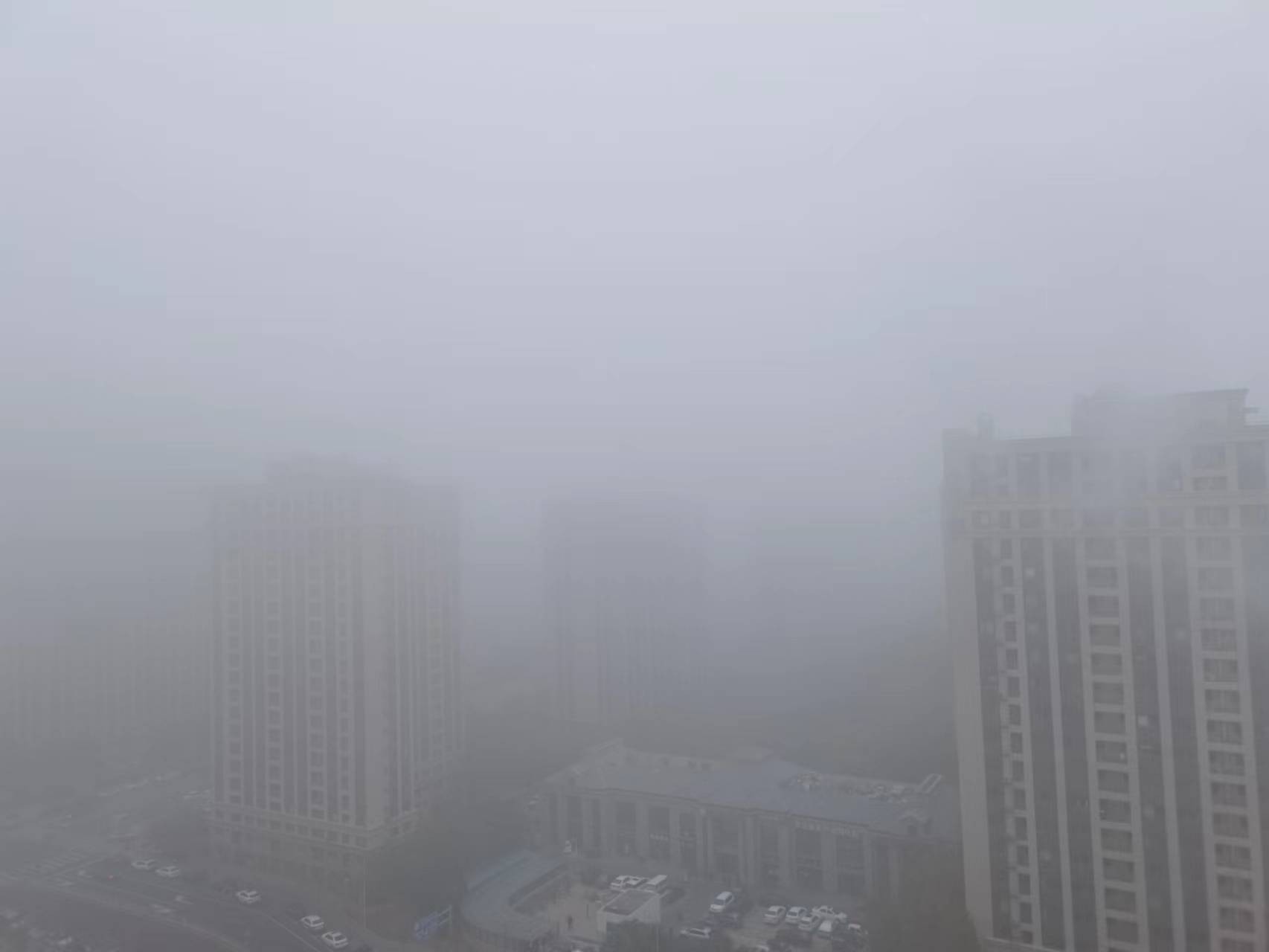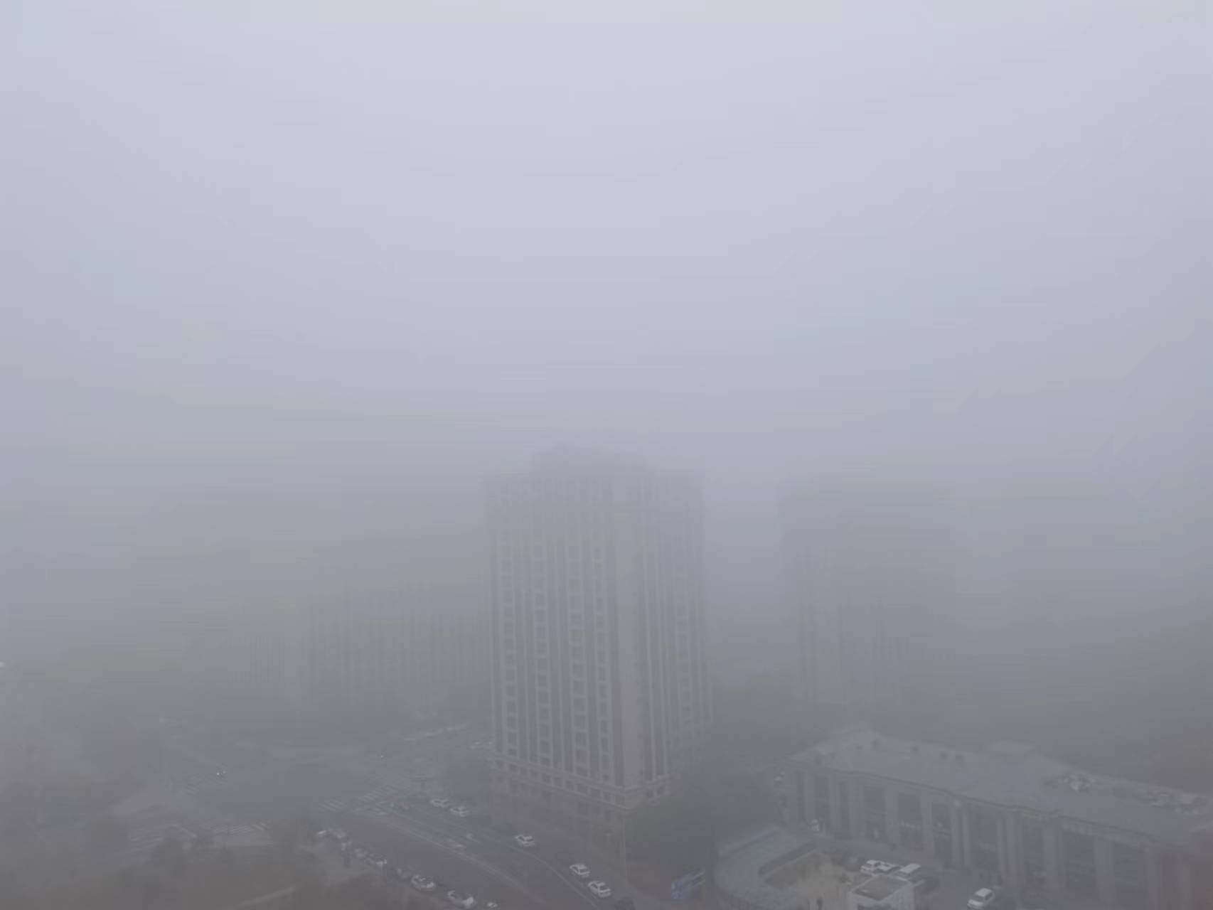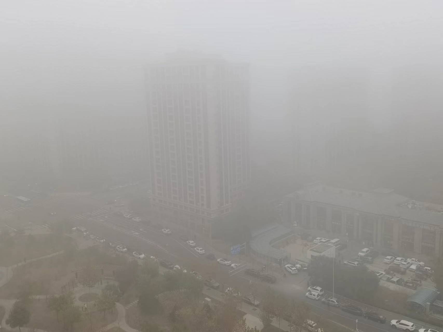 11月20日下午16时许,重污染天气下的北京亦庄新城,从居民楼上远眺,雾气弥漫,能见度很低,几十米外的楼宇都模糊不清。