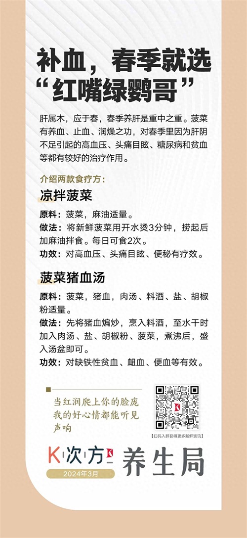 K次方养生局 | 补血,春季就选“红嘴绿鹦哥”