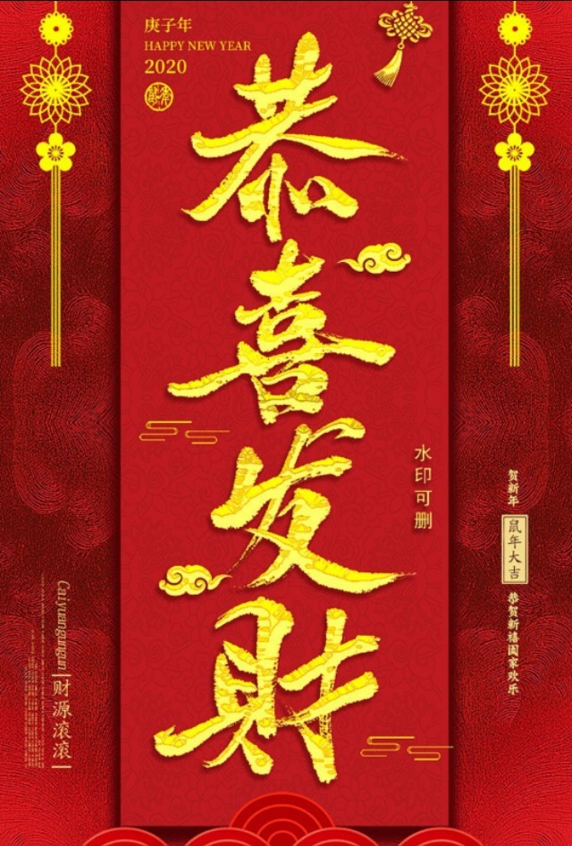 「2020恭喜发财」手机壁纸,红红火火,财气逼人,太漂亮了