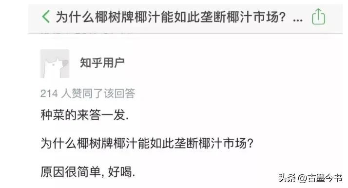 而那些椰汁市场,后来者能有椰树椰汁好喝的价格没椰树便宜,价格比椰树椰汁便宜的又没椰树椰汁好喝,并且椰树不添加香精和防腐剂的口号更是精准击中长辈们饮食理念。