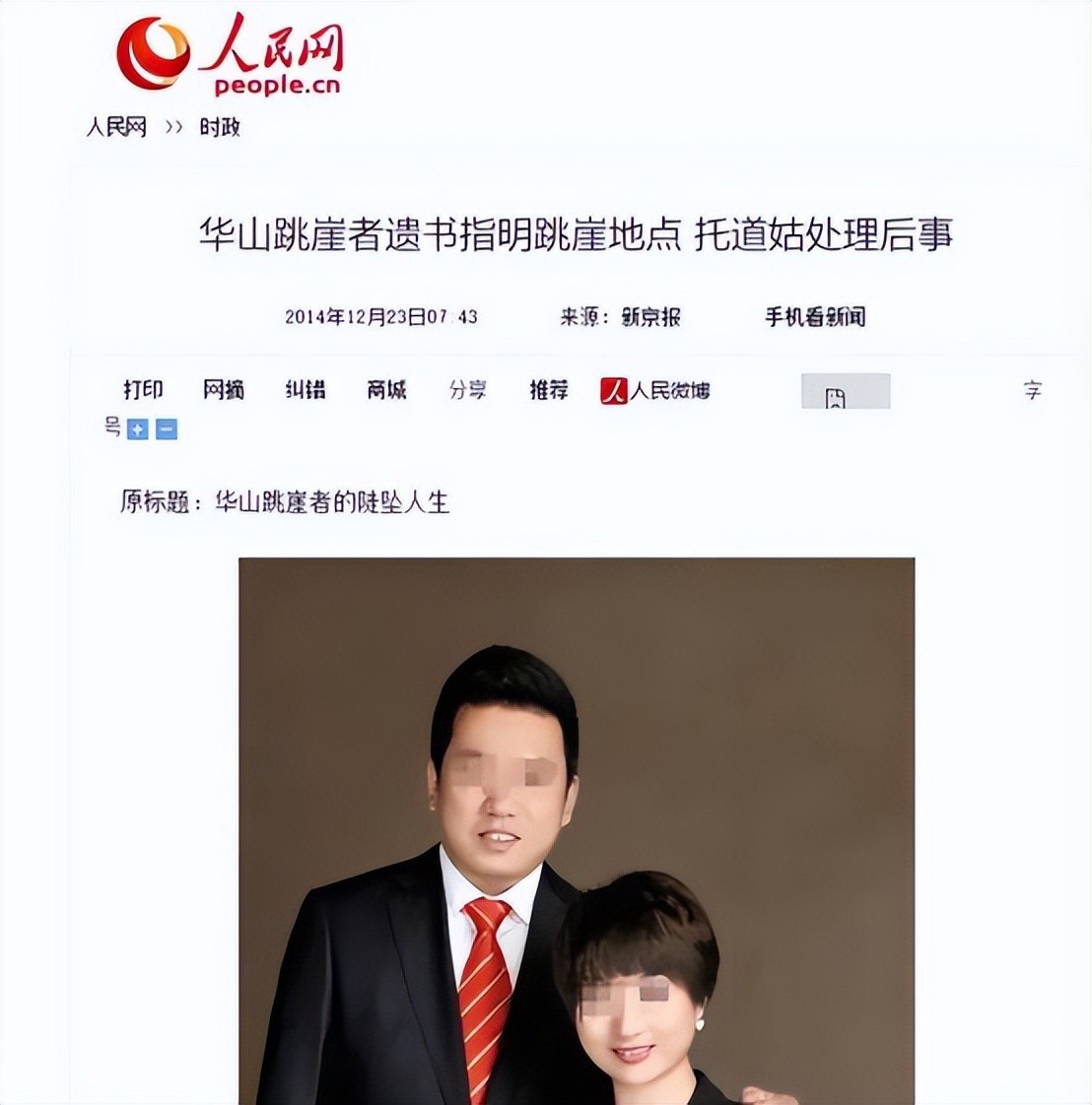 2014年,一家4口在华山跳崖,只留下出生仅58天的女婴,因为什么