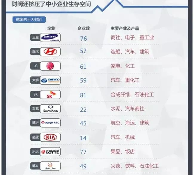 韩国虽然步入了发达国家的行列但却同样由于快速发展积累了许多弊端。尾大不掉的财阀便是其中之一,借着汉江奇迹的春风三星从一个水果摊变成了每个韩国人都离不开的第一大企业,其产值占到了韩国GDP的20%,而现代也占据了韩国GDP的11%,要是再加上其他大小财阀,恐怕韩国90%经济都被垄断了。