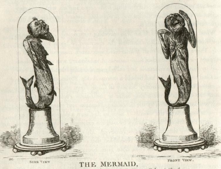 也是从那个时候开始,人鱼标本开始大量出现。上到私人博物馆,下到畸形秀表演,都有人鱼标本的身影。