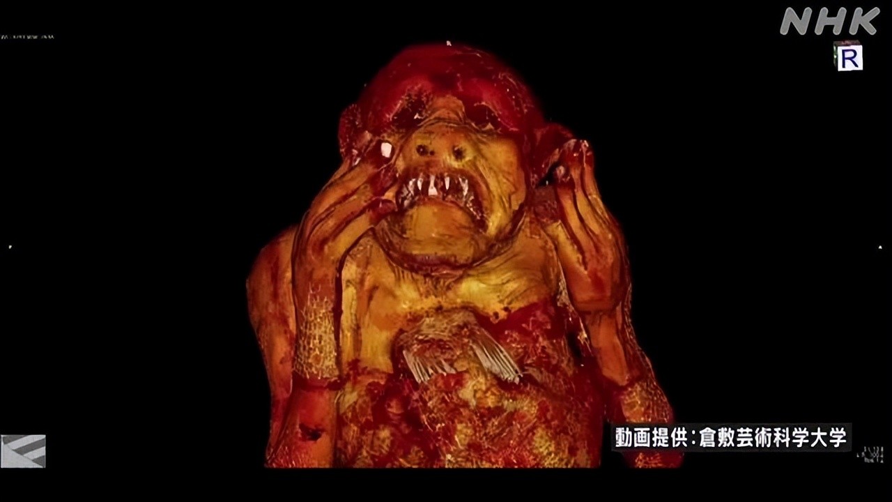 仓敷艺术科学大学的学者通过扫描发现,这具木乃伊的上半身与灵长类非常相似,且手部和脸部有鳞片!