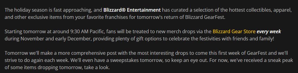 最近,外媒挖掘出暴雪即将发布最新2022 GearFest 限量版周边。文中指出,假期快到了,暴雪 GearFest 精心挑选了最热门的收藏品、服装和其他独家物品。计划在北京时间11月2日0点 左右开始,粉丝们将在 11 月和 12 月初每周通过暴雪海外Gear(gear.blizzard.com)获得新的商品掉落。提供大量礼物选择。