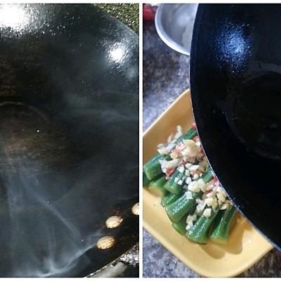 6、锅中倒入适量的食用油,秋葵的做法 家常,烧至冒烟后方法倒入秋葵上作用。