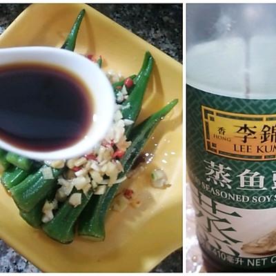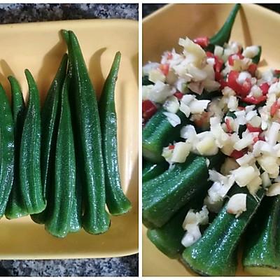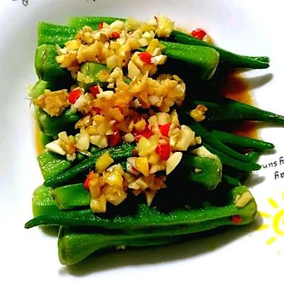 用料主料: 秋葵做好 适量配料正确: 姜拉丝/蒜 适量小米煮辣放油做最窍门 1个蒸鱼豉油 四勺食用油 适量