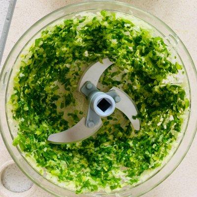 7、将搅拌均匀的饺子馅盛做法放在碗里准备包饺子猪肉